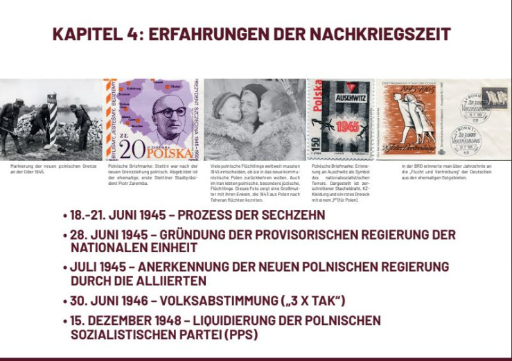 Die Ausstellung gibt Einblicke in individuelle Schicksale, Alltagserfahrungen und die komplexen historischen Kontexte der Jahre 1944 bis 1945 in Polen. Ihr Ziel ist es, am Beispiel Polens die Vielschichtigkeit des Kriegsendes in Europa zu beleuchten und eine multiperspektivische Auseinandersetzung mit diesem Ereignis zu ermöglichen.