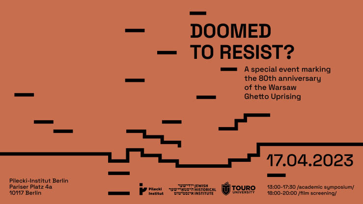 The Pilecki Institute in Berlin is organizing a scholarly conference entitled "Doomed to Resistance?" in cooperation with the Emanuel Ringelblum Jewish Historical Institute (Warsaw) and Touro University (Berlin) to mark the 80th anniversary of the Warsaw Ghetto Uprising. The purpose of the event is to commemorate this important part of the history of the Holocaust and to recall this fragment of Polish-Jewish history in Germany. The conference will feature short lectures by and discussions with scholars from participating institutions. Researchers, students, teachers and educators, and all those interested in the topic of the event are invited to attend.