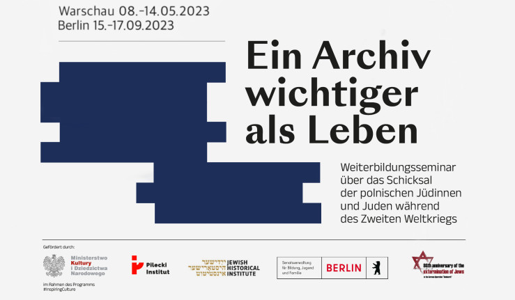 Bereits zu vierten Mal organisiert das Pilecki-Institut Berlin in Kooperation mit dem Jüdischen Historischen Institut in Warschau und der Berliner Senatsverwaltung für Bildung, Jugend und Familie das Weiterbildungsseminar "Ein Archiv wichtiger als Leben". Das Projekt wird vom Ministerium für Kultur und Nationales Erbe der Republik Polen im Rahmen des Programms "Inspirierende Kultur" für 2022/23 gefördert.