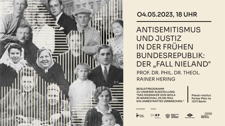 Der Vortrag findet im Rahmen des Begleitprogramms zu unserer Ausstellung "Das Massaker von Wola in Warschau, 05.08.1944. Das unbestrafte Verbrechen" statt. Um 17 Uhr kann man zusätzlich auch an einer öffentlichen Führung teilnehmen. Ende der fünfziger Jahre des 20. Jahrhunderts löste eine antisemitische Veröffentlichung einen bundesweiten Justizskandal in Deutschland aus – den „Fall Nieland“. Diese Publikation stand im Kontext der „antisemitischen Schmierwelle“ in der zweiten Hälfte der fünfziger Jahre. Im Vortrag werden der konkrete Inhalt, die Akteure und die Folgen dieses Skandals analysiert.