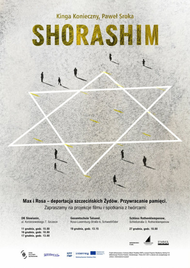 Shorashim/Korzenie – ein Dokumentarfilm der Stettiner Filmemacher Kinga Konieczny und Paweł Sroka erzählt die Geschichte der weitgehend vergessenen Vernichtung der jüdischen Gemeinde Stettins, die sich in einer kalten Februarnacht des Jahres 1940 ereignete.