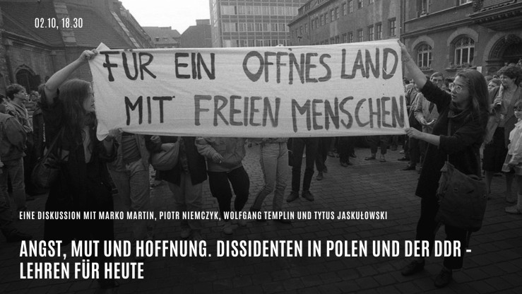 "Angst, Mut und Hoffnung: Dissidenten in Polen und der DDR – Lehren für heute". Eine Diskussion mit Marko Martin, Piotr Niemczyk und Wolfgang Templin, die von Prof. Tytus Jaskułowski moderiert wird.