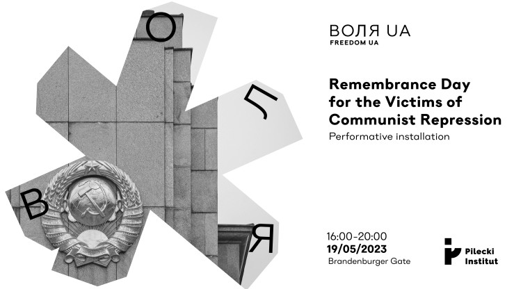 We cordially invite you to join us on May 19 and honor the memory of the victims of the communist regime. Come and visit the performative installation “Remembrance Day for the Victims of Communist Repression” at the Brandenburg Gate on Friday from 16:00 to 20:00. It will be shown outdoors as part of the Pilecki Institute’s Воля UA (Volia) program. The installation points to the most absurd fragments of the urban landscape of Berlin which are still conveying narratives put forward by the communist totalitarian regime. Visitors of the exhibition will learn that even in well-known tourist spots symbols proclaiming "glory to Stalin" can still be spotted.