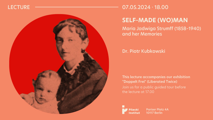 Dr. Piotr Kubkowski´s lecture “Self-made (wo)man - Maria Jadwiga Strumff (1858 - 1940)” is the fourth event accompanying our exhibition "Liberated Twice” (Doppelt Frei). Dr. Kubkowski will present the fascinating biography of a (very) self-confident woman in Warsaw at the end of the 19th century. Jadwiga Maria Strumff (1858-1940), a baptized Jew who had just moved to Warsaw, was left by her husband from one day to another suddenly having to raise four children by herself.