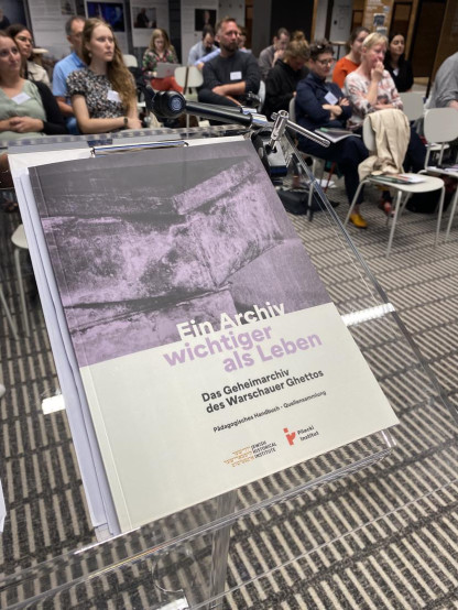 Zur weitereren Vertiefung: Das Pilecki-Institut hat in Zusammenarbeit mit dem Jüdischen Historischen Institut vor Kurzem das Buch "Ein Archiv wichtiger als Leben. Das Geheimarchiv des Warschauer Ghettos" herausgebracht. Das Buch beinhaltet Texte über das Warschauer Ghetto und die Gruppe Oneg Schabbat, einen Zeitstrahl, zahlreiche Bilder und Quellen aus dem Ringelblum-Archiv sowie Hinweise zum Einsatz der Materialien im Unterricht.