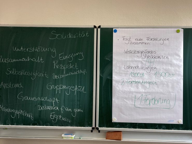 Um das neue Wissen rund um die Solidaritätsbewegung zu festigen, nahmen die SuS in gemischten Kleingruppen an unserem Verhandlungsspiel „Was ist Solidarität?“ teil. Dabei haben sie die Forderungen ihrer jeweiligen Gruppe während gemeinsamer Verhandlungen repräsentiert, um Kompromisse finden zu können. Trotz emotionaler und aufregender Verhandlungsrunden ist es den SuS gelungen, zu einer gemeinsamen Lösung zu kommen und so zu erfahren, was es heißt, sich solidarisch zu zeigen.