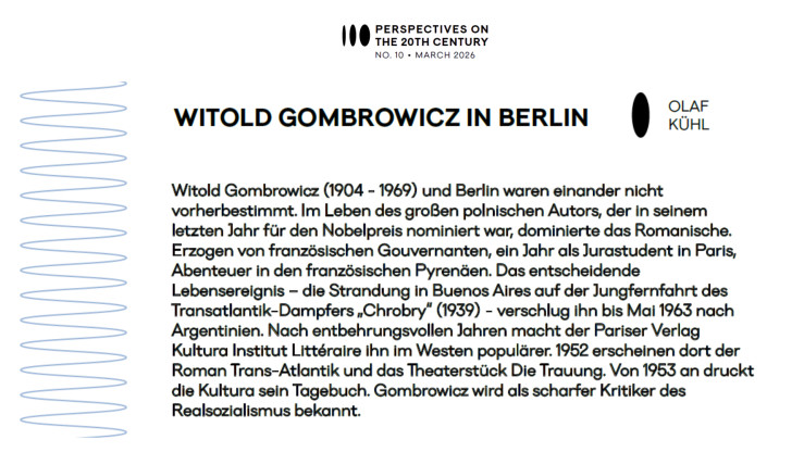 - Witold Gombrowicz in Berlin (NO 10, March 2026), Olaf Kühl