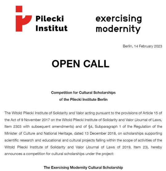 The scholarship offer is addressed only to artists, thinkers, and/or scholars of the humanities who took part in the Exercising Modernity Academy organized by the Pilecki Institute in 2022.