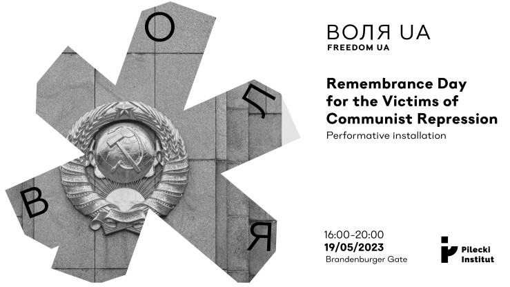 We cordially invite you to join us on May 19 and honor the memory of the victims of the communist regime. Come and visit the performative installation “Remembrance Day for the Victims of Communist Repression” at the Brandenburg Gate on Friday from 16:00 to 20:00. It will be shown outdoors as part of the Pilecki Institute’s Воля UA (Volia) program. The installation points to the most absurd fragments of the urban landscape of Berlin which are still conveying narratives put forward by the communist totalitarian regime. Visitors of the exhibition will learn that even in well-known tourist spots symbols proclaiming "glory to Stalin" can still be spotted.