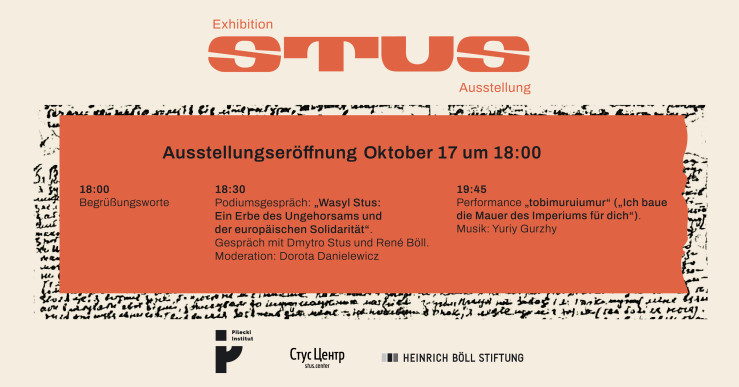 18:30 - Panel discussion with Dmytro Stus and René Böll: ‘Wasyl Stus: Ein Erbe des Ungehorsams und der europäischen Solidarität mit Dmytro Stus und René Böll’. Moderator: Dorota Danielewicz