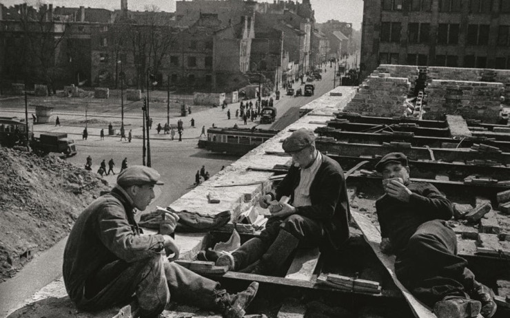 Fototekst.pl: Im Haus der Begegnung mit der Geschichte (Dom Spotkań z Historią) sind zahlreiche beeindruckende Aufnahmen zu sehen. Szenen aus dem Alltag zeigen, wie die Warschauerinnen und Warschauer mit den Schwierigkeiten umgingen und sogar zwischen den Ruinen lachen konnten. Es ist eine optimistische Vision. Und obwohl dieser Optimismus eines der Elemente der Nachkriegspropaganda war, war er zugleich etwas, das im Leben der Bewohner der Hauptstadt tatsächlich präsent war. Davon zeugen auch die Berichte ausländischer Fotojournalisten, die Polen besuchten. Die Energie und der Enthusiasmus des Wiederaufbaus waren Eigenschaften, die jedem von ihnen sofort ins Auge fielen – besonders im Vergleich zu anderen zerstörten europäischen Städten.