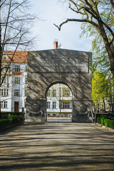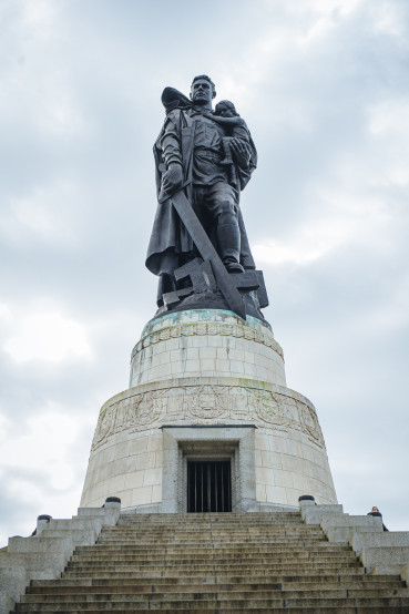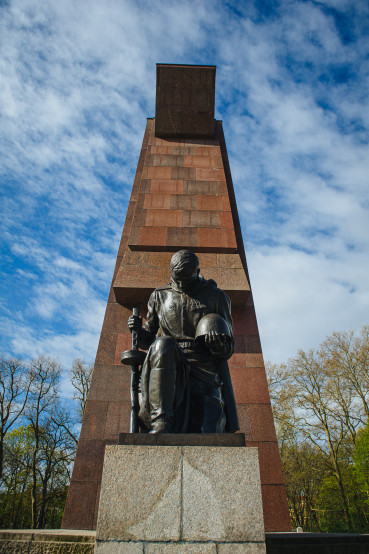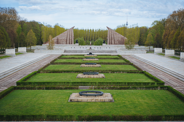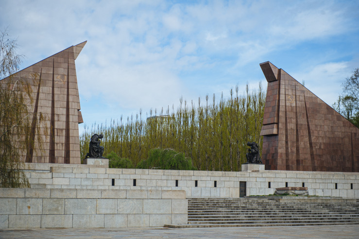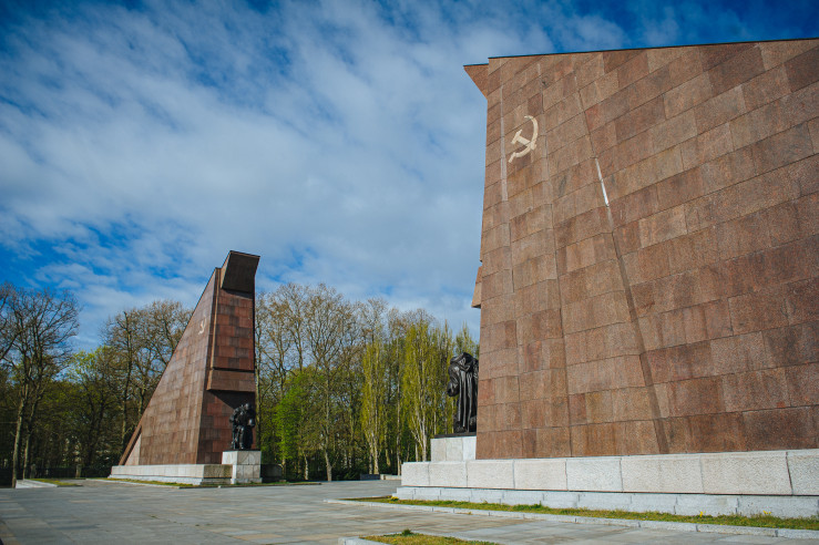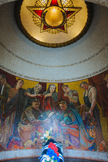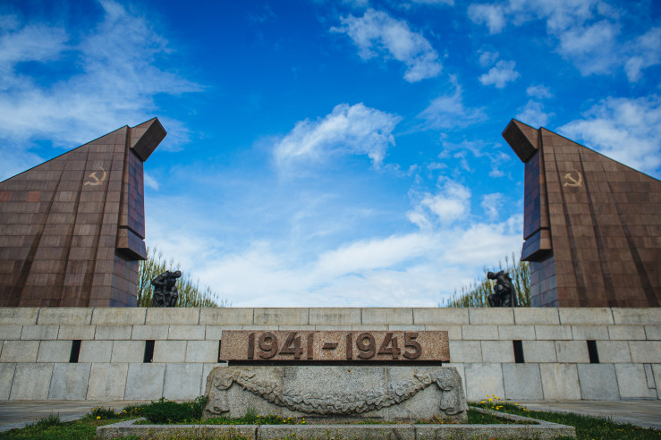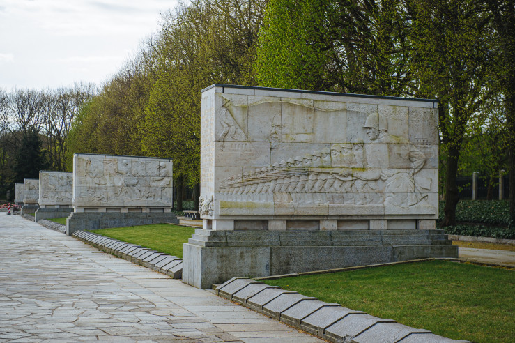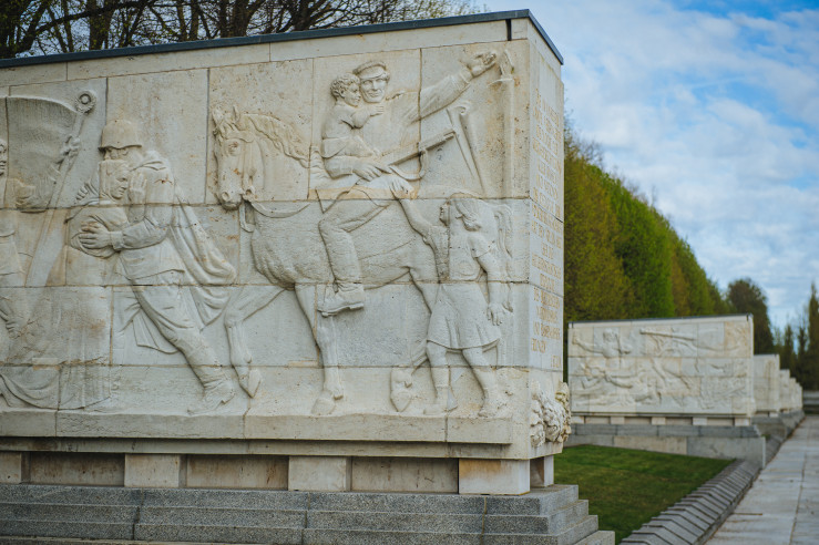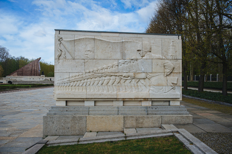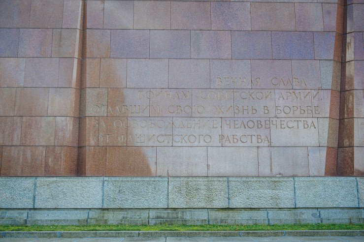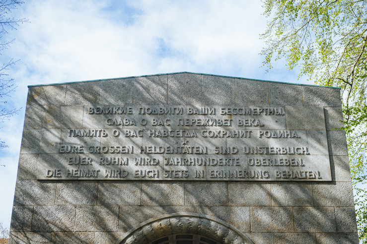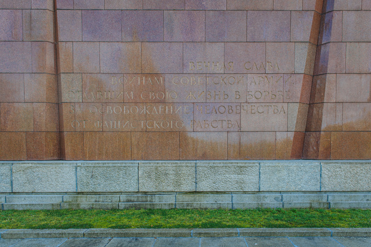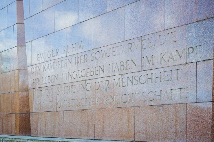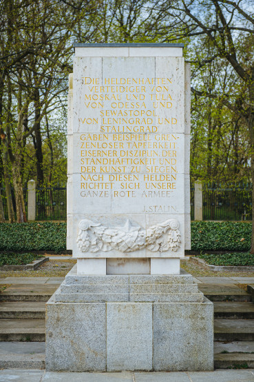 The Soviet regime transformed the resting place of fallen soldiers into a site for its propaganda. Instead of honoring those who sacrificed their lives for a world liberated from National Socialism, the Soviet totalitarian system repurposed it as an imperialist space. The memorial area displays 16 quotes by Stalin in both German and Russian. Additionally, the years of World War II (1941-1945) are showcased intentionally, concealing the regime's collaboration and the secret Molotov-Ribbentrop Pact, which divided the Soviet and German 'spheres of influence' in Poland, Lithuania, Latvia, Estonia, and Finland.