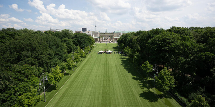 As most of you will have noticed, Pariser Platz and a large part of the Tiergarten are being extended and remodelled: And with good reason - this year, the biggest fan mile for the European Football Championship, which starts on 14 June, is once again being created here. The fan zone stretches from the Brandenburg Gate across the Straße des 17. Juni to the Große Querallee. One of the entrances to the fan mile will also be located to the side of the Brandenburg Gate on Pariser Platz.