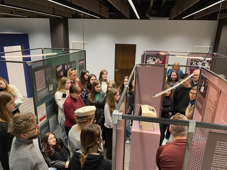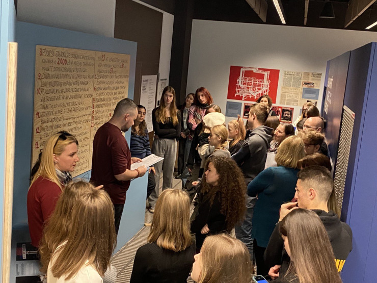 Nach einer Einführung über die polnische Geschichte nach dem Zweiten Weltkrieg haben wir eine Führung durch unsere Sonderausstellung „Solidarität. Hilfe. Freiheit“ gemacht und dabei die Geschichte der größten freien Gewerkschaft im ehemaligen Ostblock, Solidarność, nähergebracht.