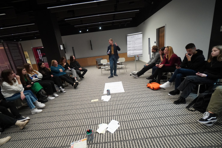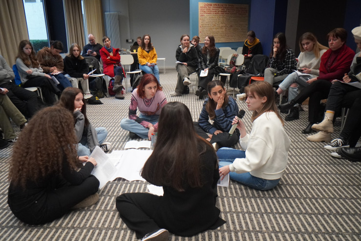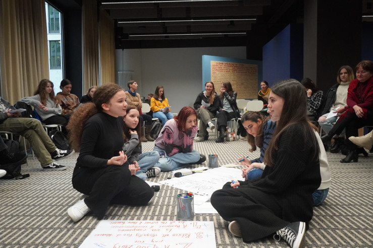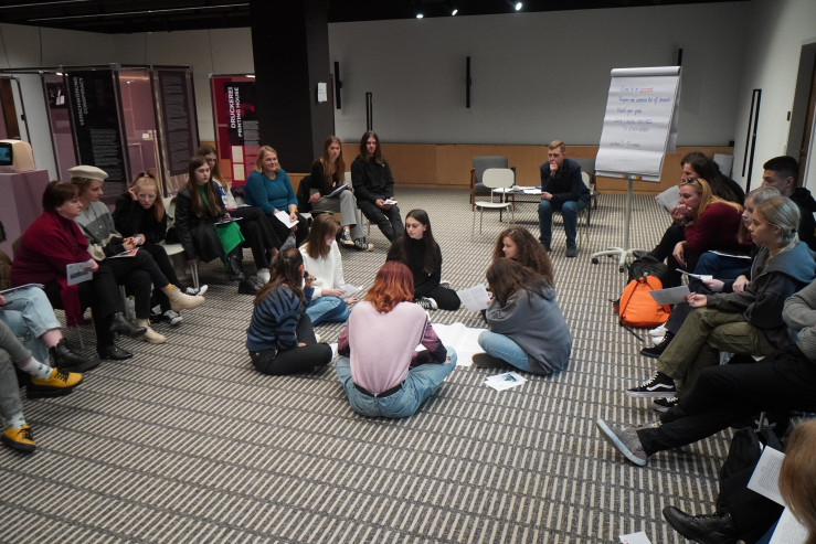 Der spannendste Teil des Workshops fand nach einer kurzen Pause statt. In gemischten Kleingruppen nahmen die Jugendlichen an unserem Verhandlungsspiel „Was ist Solidarität?“ teil, wo es viel um Kompromissfindung und erfolgreiche Kommunikation ging. Trotz Emotionen und Aufregung ist es den Teilnehmenden gelungen, zu einer gemeinsamen Lösung zu kommen und im Endeffekt als ein Team zu agieren. In ihren Rückmeldungen nach dem Spiel haben die Jugendlichen erwähnt, dass das Spiel ihnen sehr klar gezeigt hat, wie wichtig es ist, für eigene Werte zu kämpfen, aber dabei die Perspektive und Interessen der anderen Mitmenschen zu berücksichtigen.